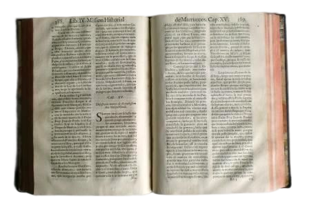 Francisco Garay, Sevilla, 1708. Portada ( a 2 tintas) + 829 págs.- + Tabla (IV hojas) + Índice (V hojas). Pequeña restauración caligráfica en la última hoja del índice. Texto a 2 columnas. En que se trata de los martirios,persecuciones y trabajos que han padecido los Missioneros, y frutos que han cogido las Missiones, que desde sus principios tuvo la Orden Seraphica en el Imperio de Marruecos, y continua la Provincia de San Diego de Franciscos Descalços de Andalucía en el mismo Imperio.